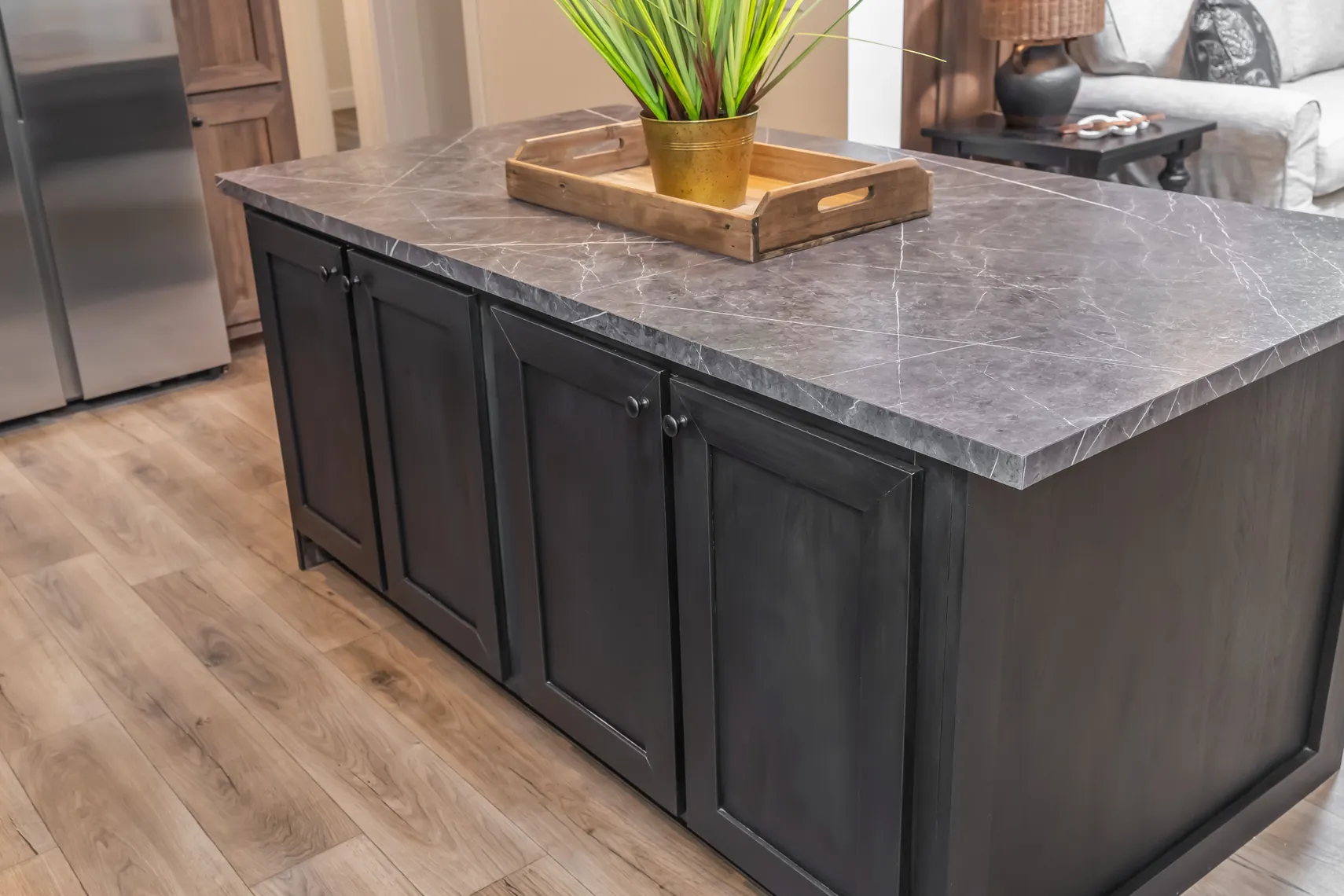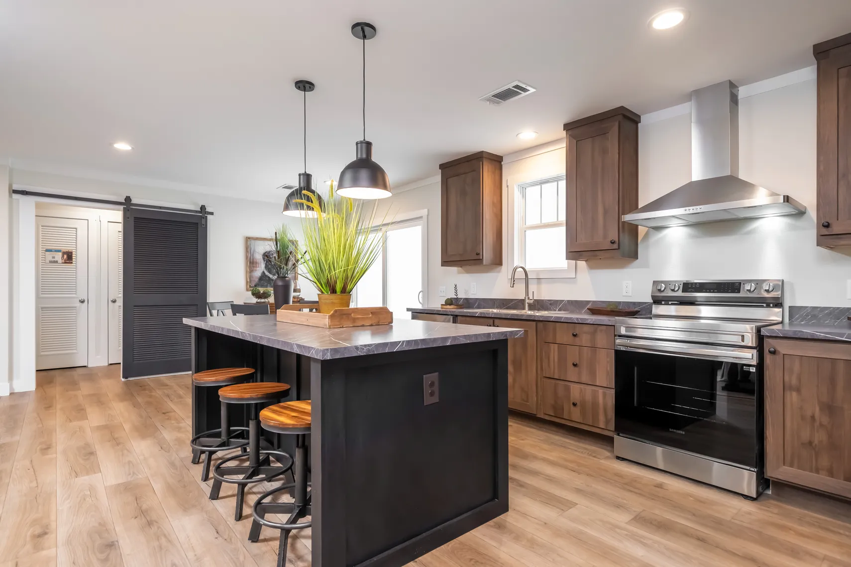 - Modern Kitchen: Kitchen features a large center island with breakfast bar — ideal for morning coffee, casual meals, or gathering with friends and family. Plenty of cabinet and counter space adds convenience and functionality.
