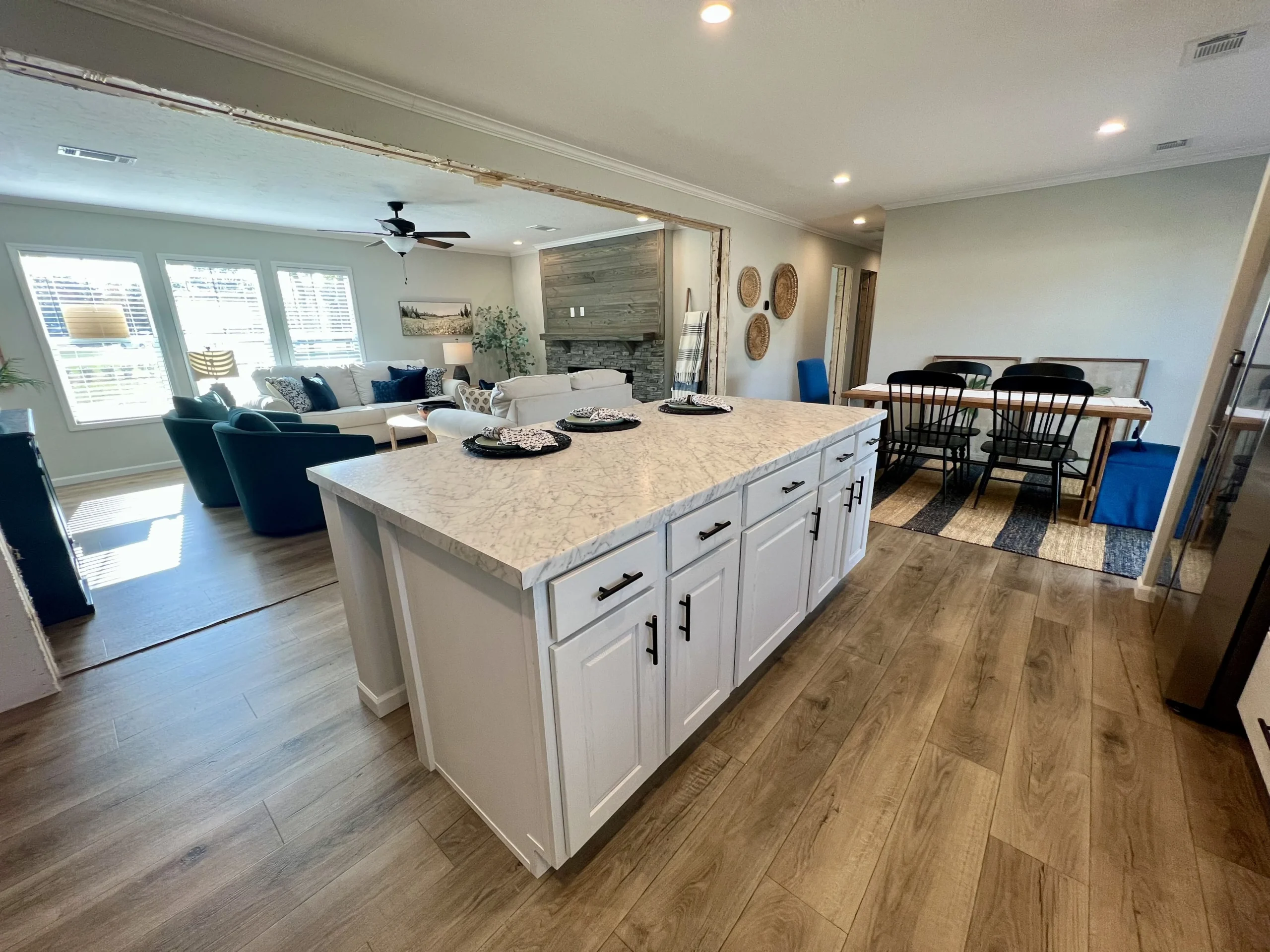- Open‑Concept Floor Plan — The living room flows seamlessly into the kitchen and dining area, creating a bright, open atmosphere that’s perfect for everyday living or entertaining guests.