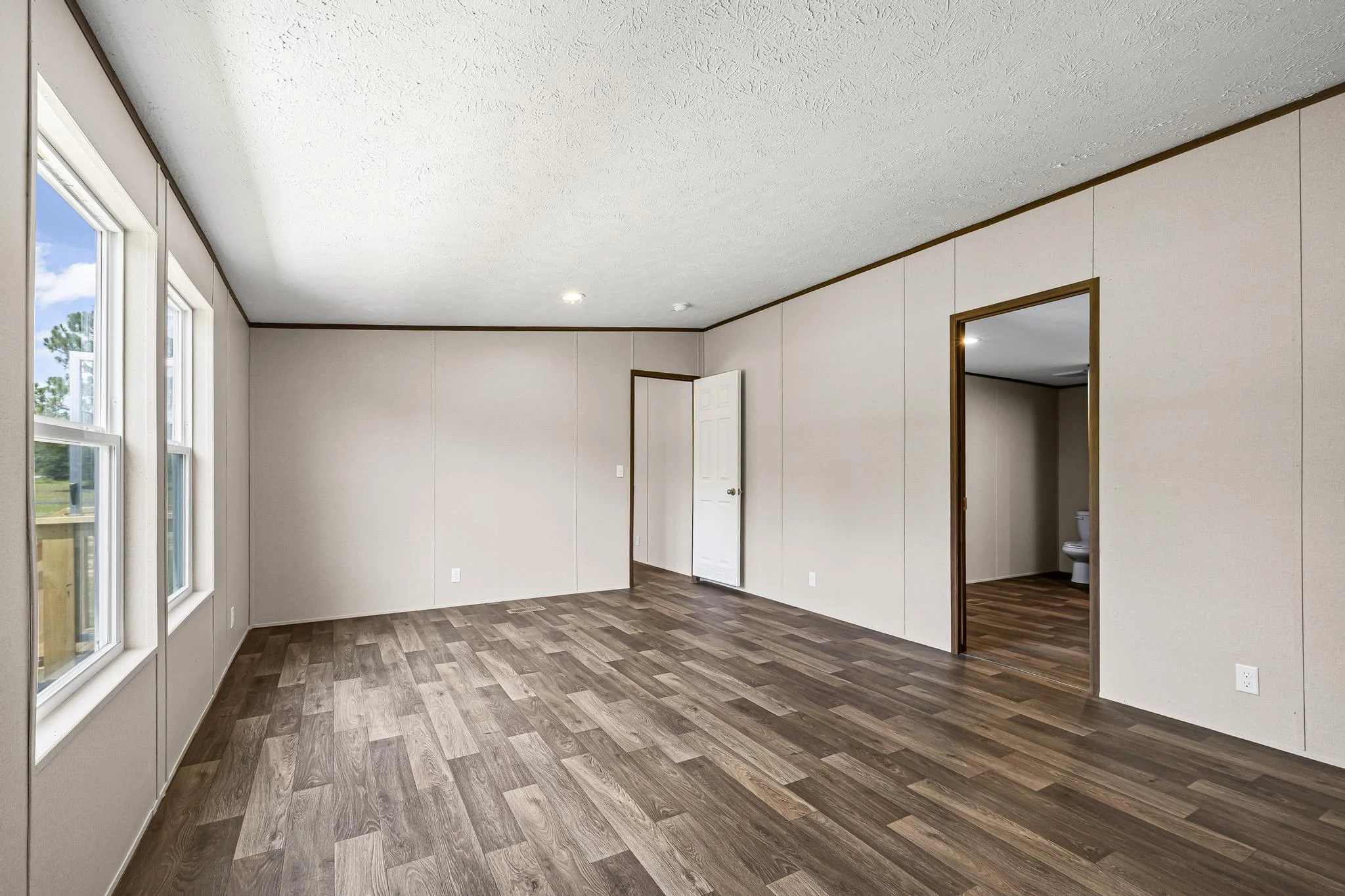 Private Master Suite: The master bedroom includes an en-suite bathroom with a large walk-in closet, providing a serene retreat within the home.