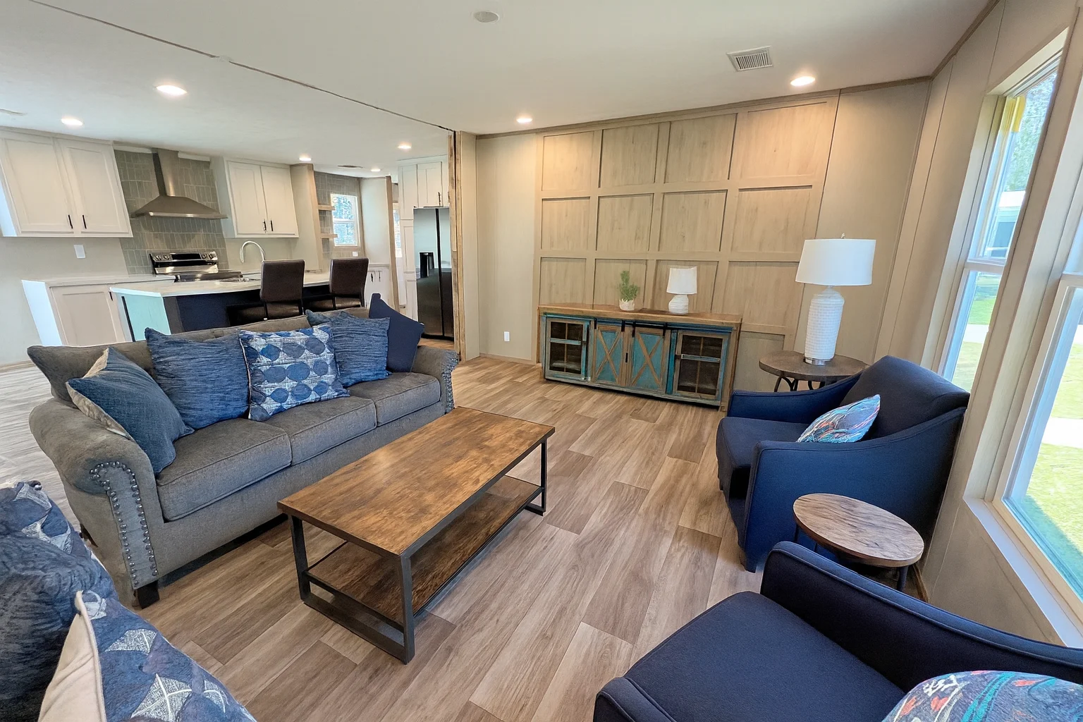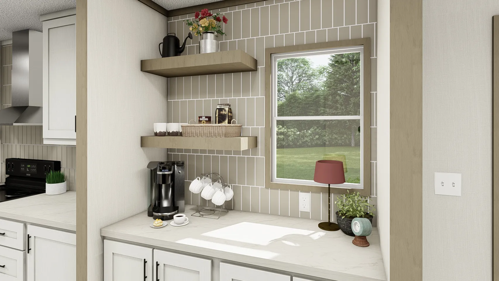 - Additional Amenities: Features such as a built-in coffee bar, stylish feature wall in the living area, and DuraCraft® cabinets with a water-resistant and scratch-resistant finish enhance the home’s appeal.