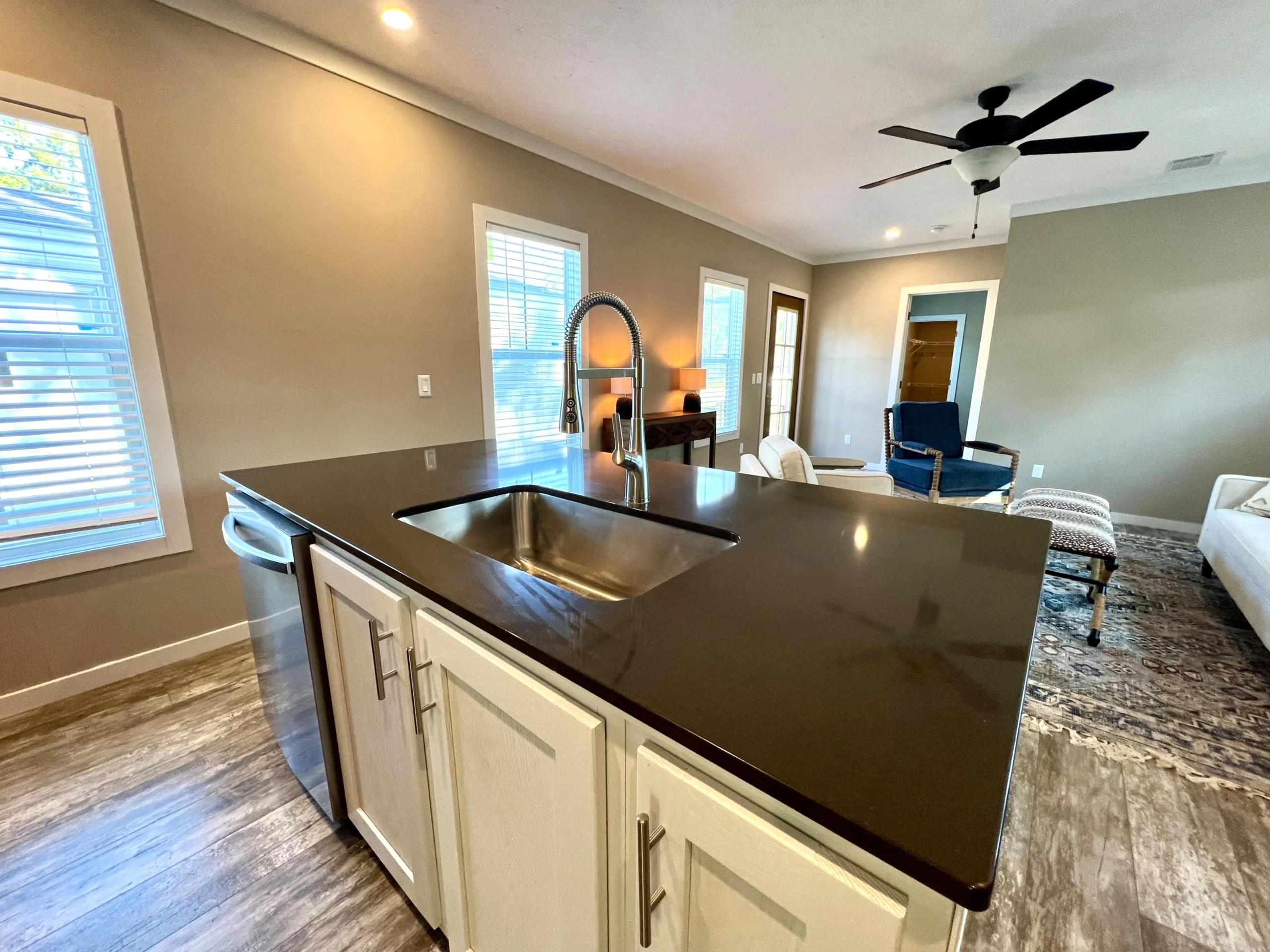 Open-Concept Layout: The spacious living area flows effortlessly into the kitchen and dining spaces, creating an inviting environment for both relaxation and entertaining.