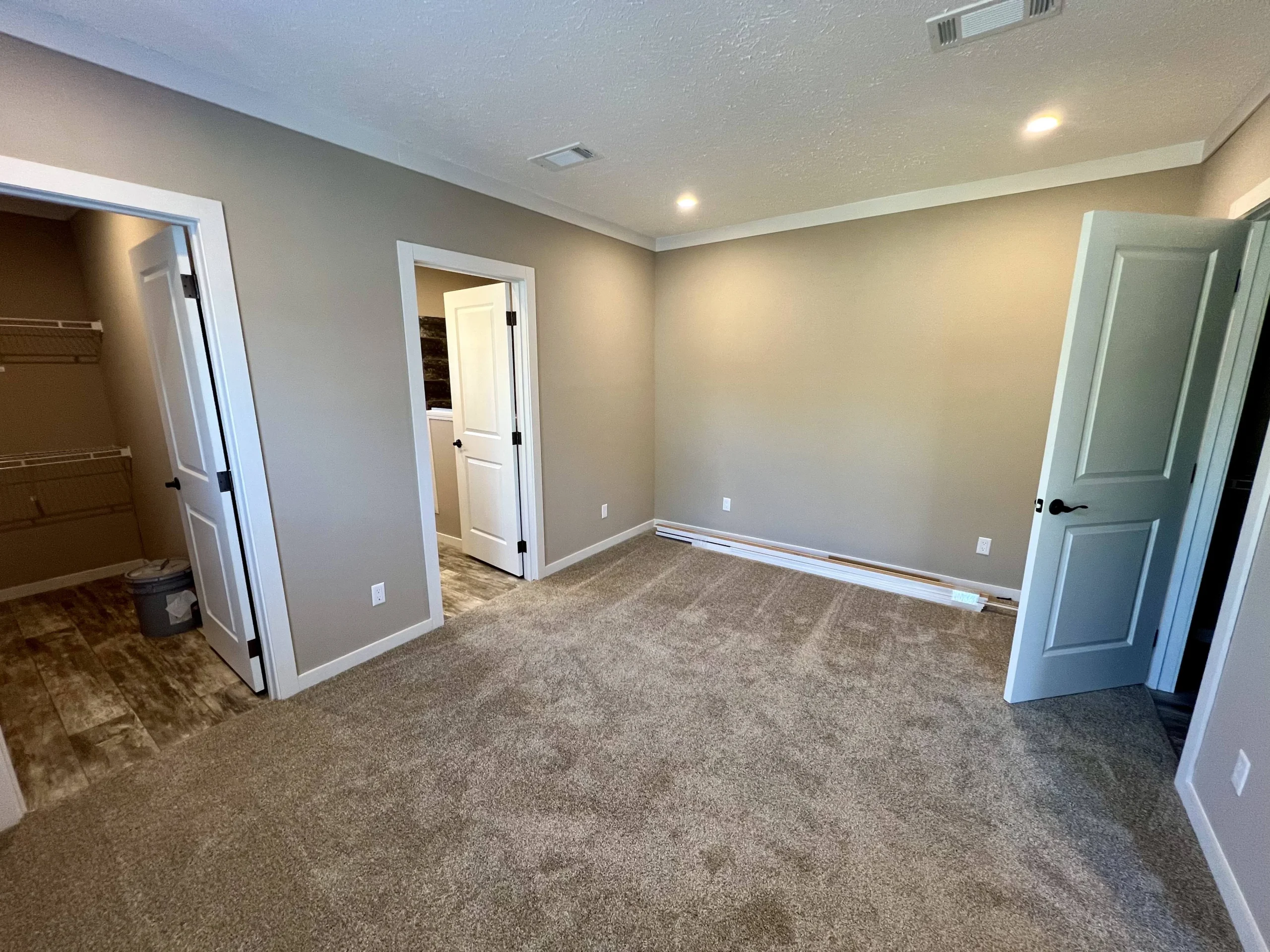 Private Master Suite: The master bedroom features an ensuite bathroom with a luxurious soaker tub, separate shower, and a generous walk-in closet, providing a serene retreat within the home.