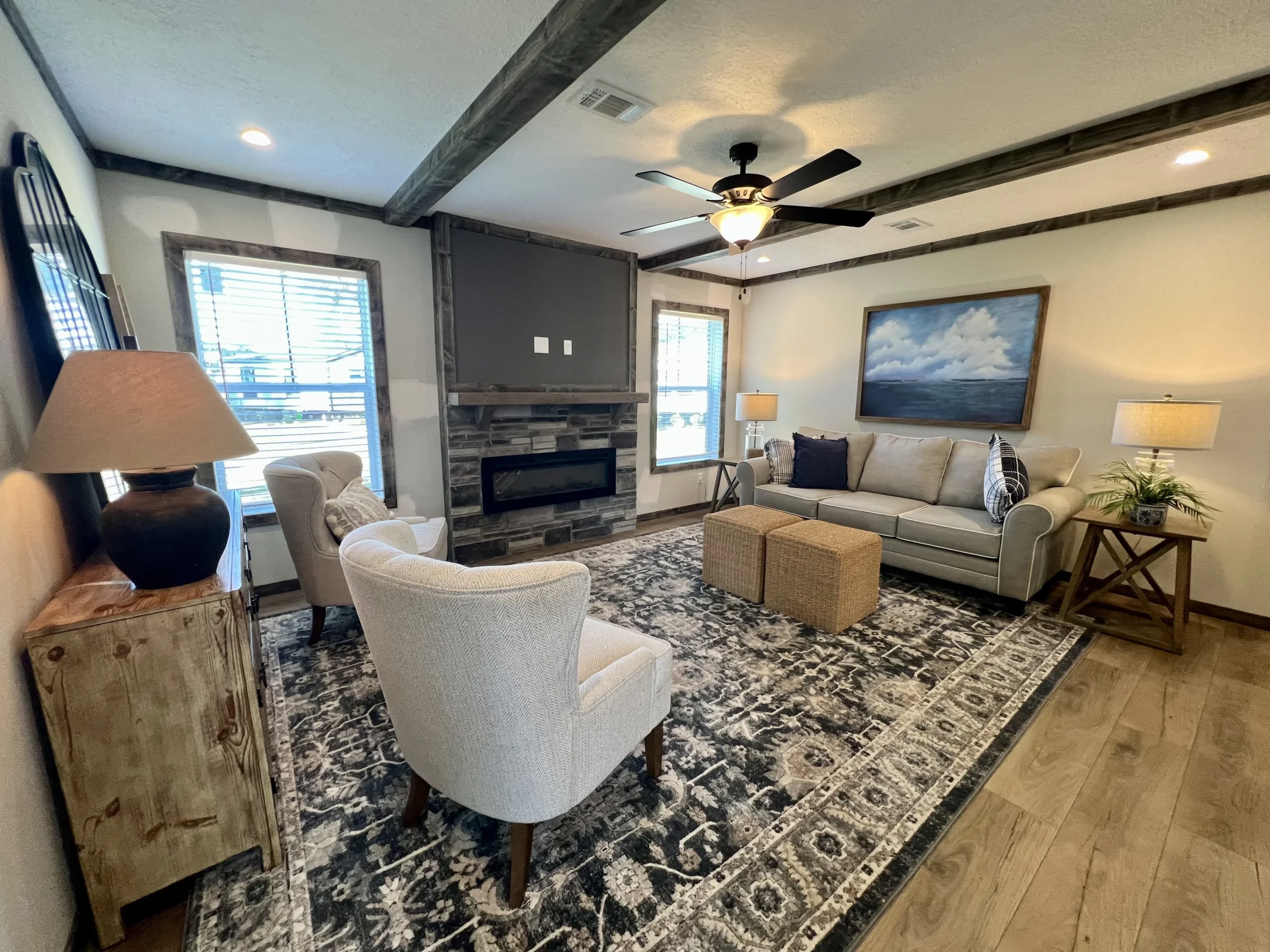Open-Concept Living Area: The Jackson boasts a spacious living room that seamlessly connects to a modern kitchen and dining area, creating an inviting atmosphere ideal for family gatherings and entertaining.