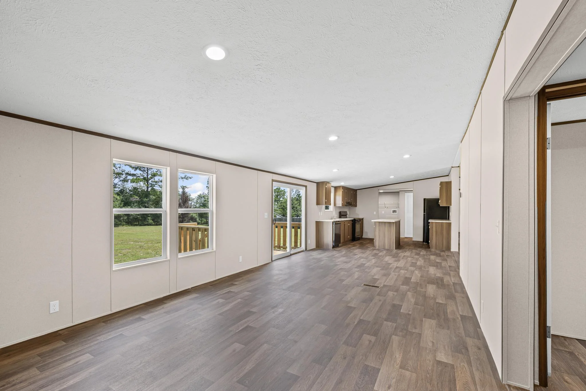Expansive Living Areas: The Pride boasts a large living room that seamlessly connects to a family room, creating versatile spaces ideal for relaxation and entertainment.