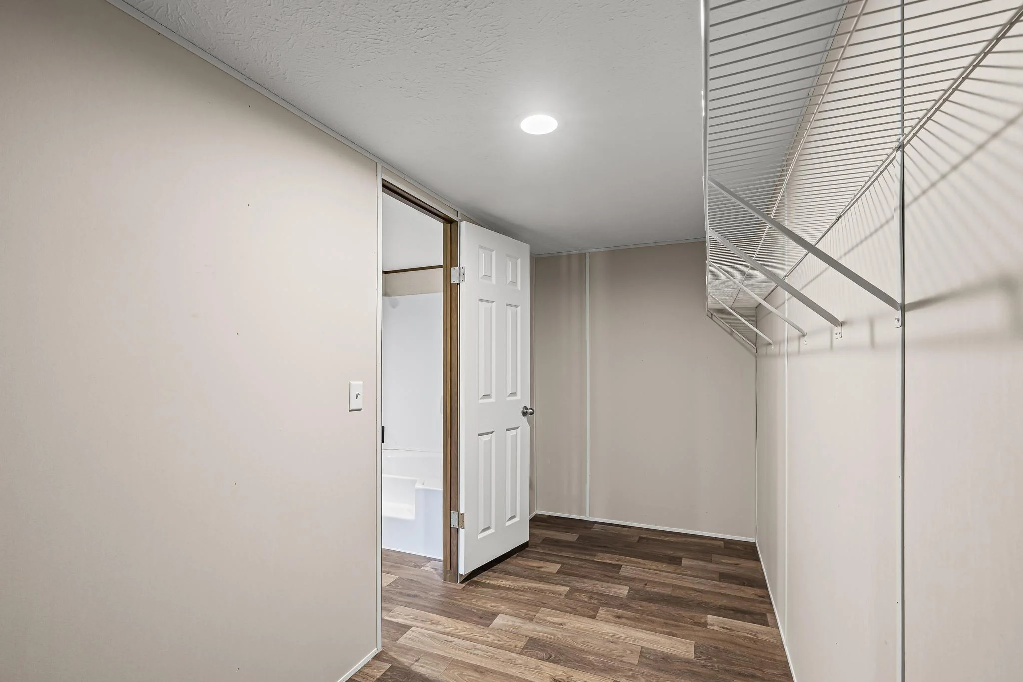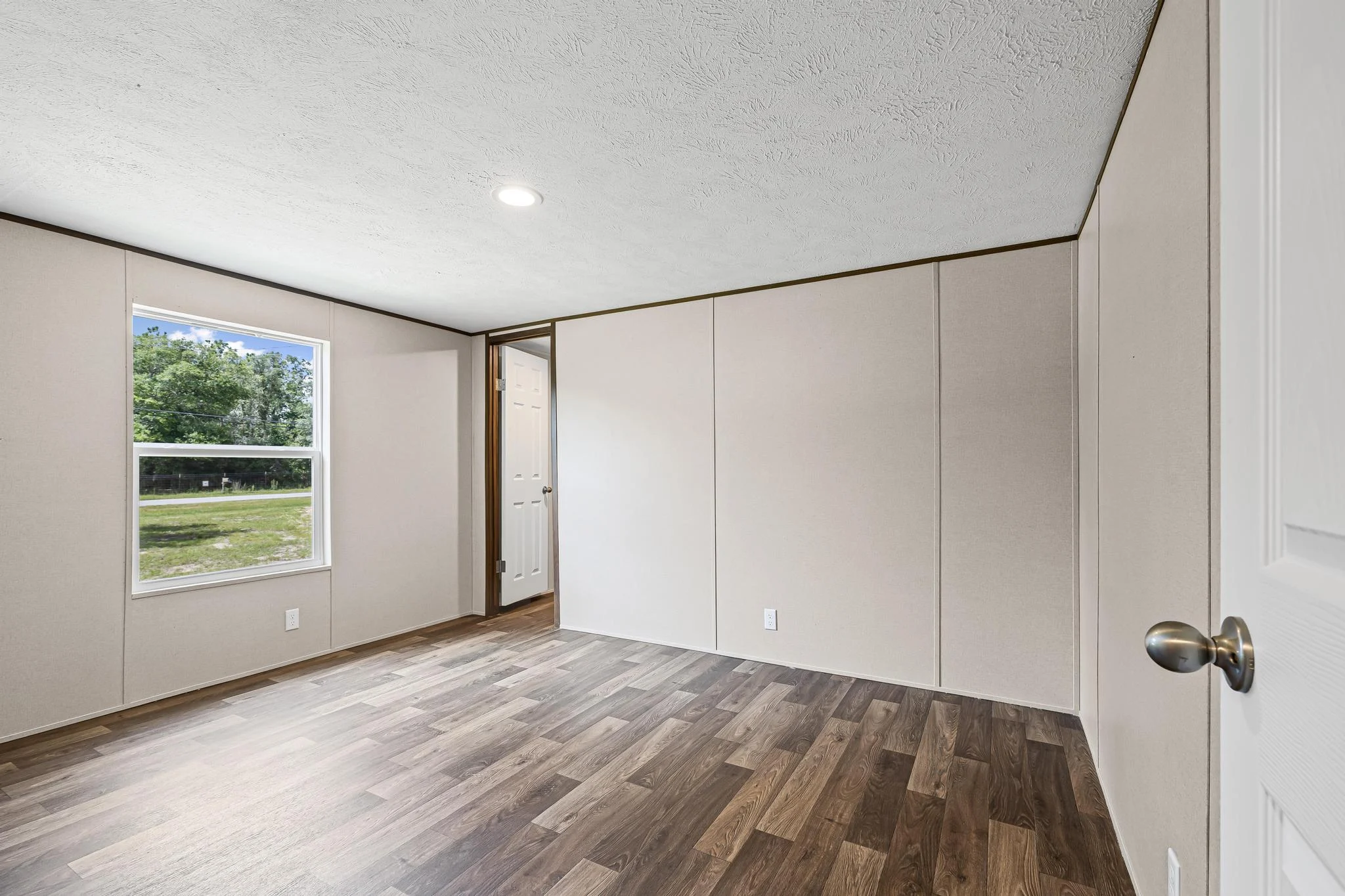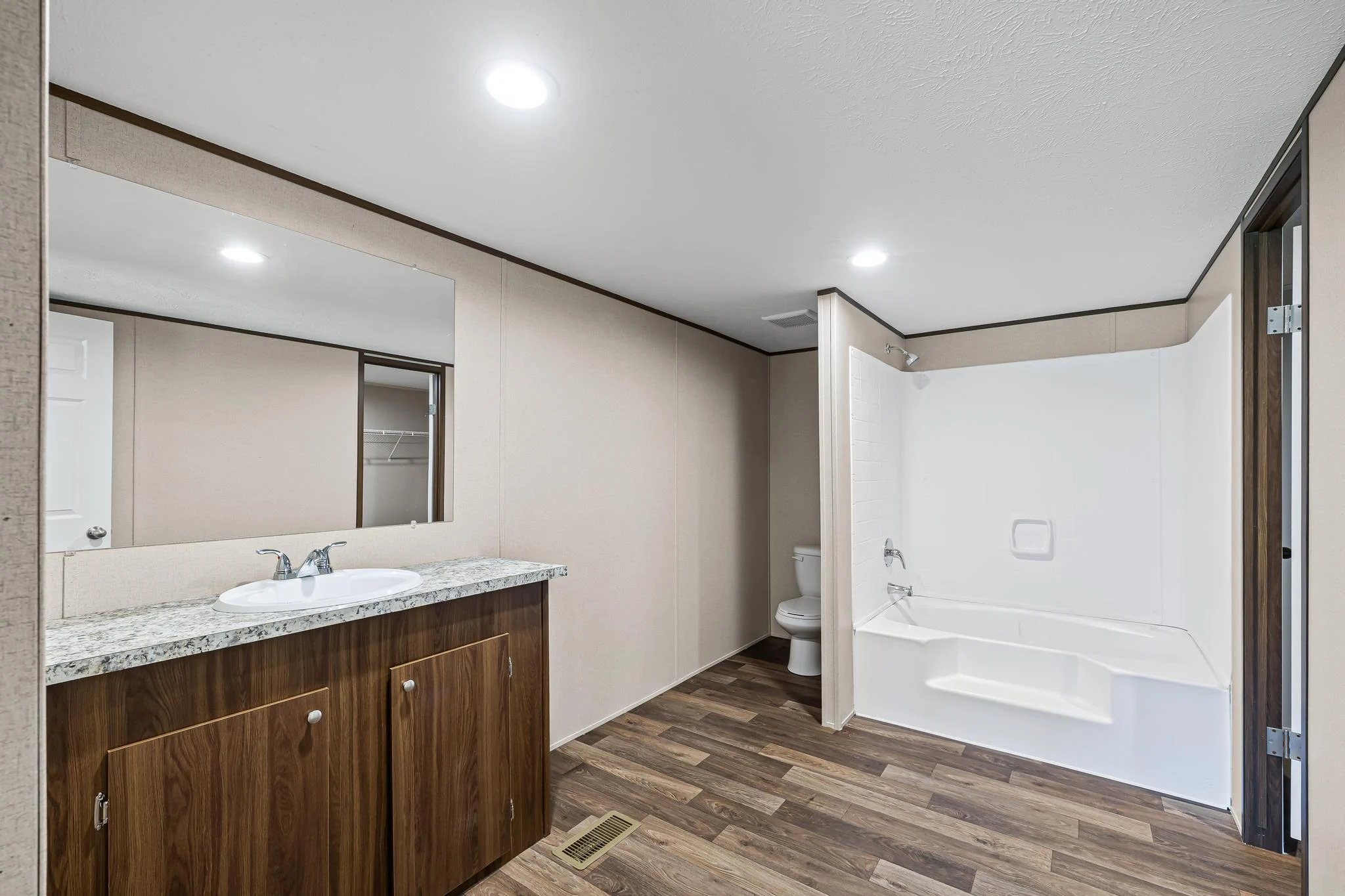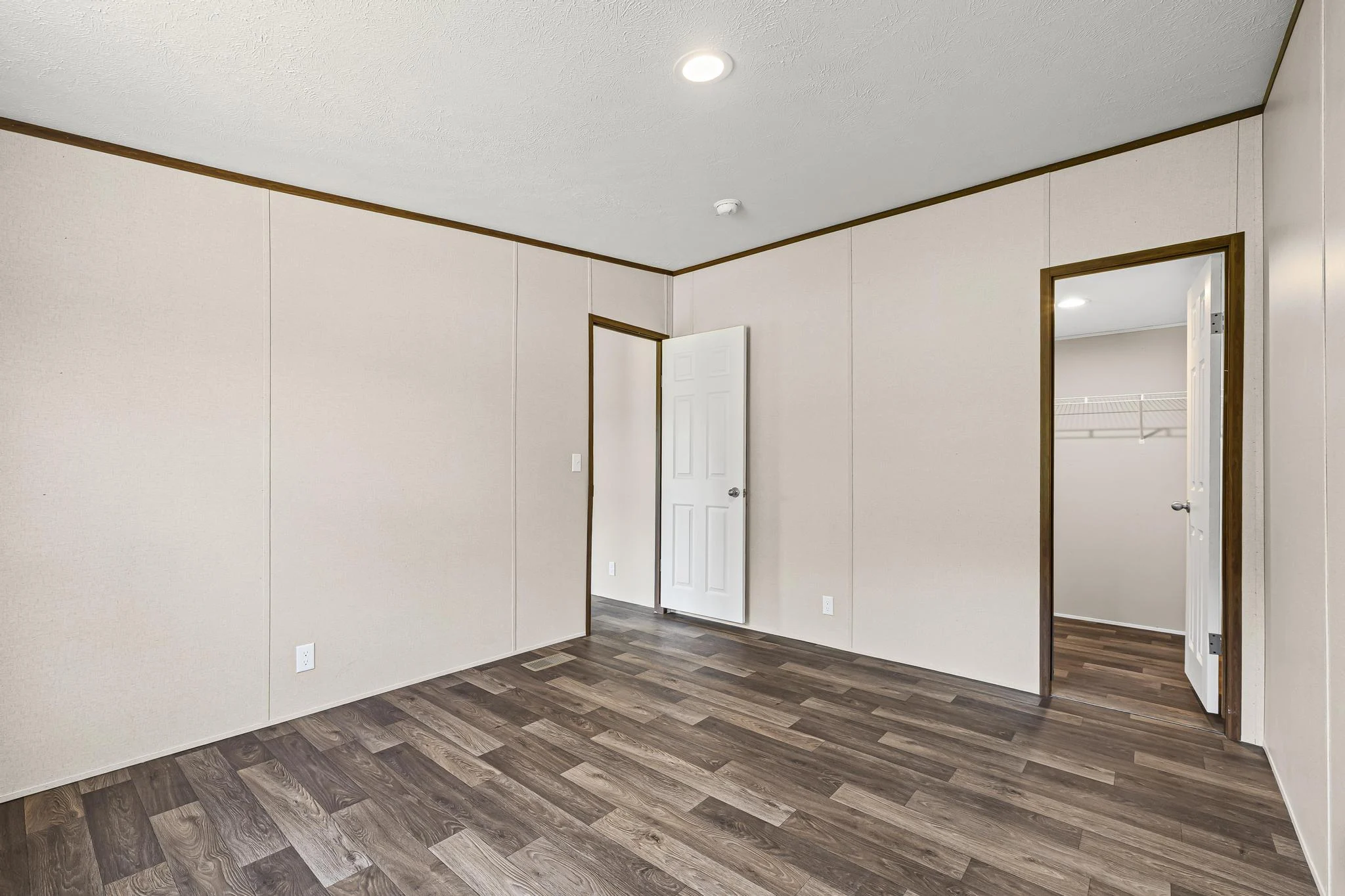 Private Master Suite: The master bedroom includes an en-suite bathroom with a large walk-in closet, providing a serene retreat within the home.