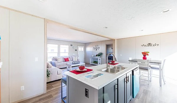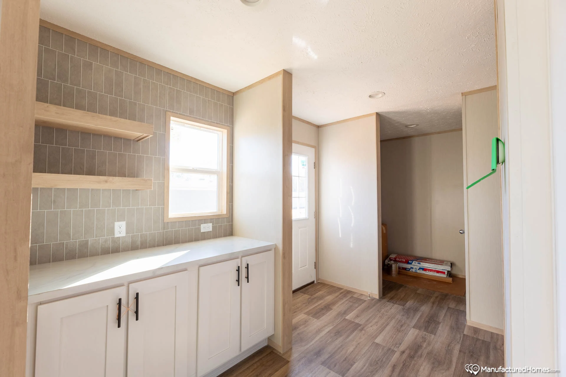 - Additional Amenities: Features such as a built-in coffee bar, stylish feature wall in the living area, and DuraCraft® cabinets with a water-resistant and scratch-resistant finish enhance the home’s appeal.