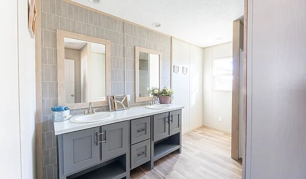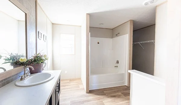 - Private Primary Suite: The primary bedroom includes an en-suite bathroom with a double sink vanity and a 42″ x 60″ one-piece fiberglass soaker tub/shower, providing a serene retreat within the home.