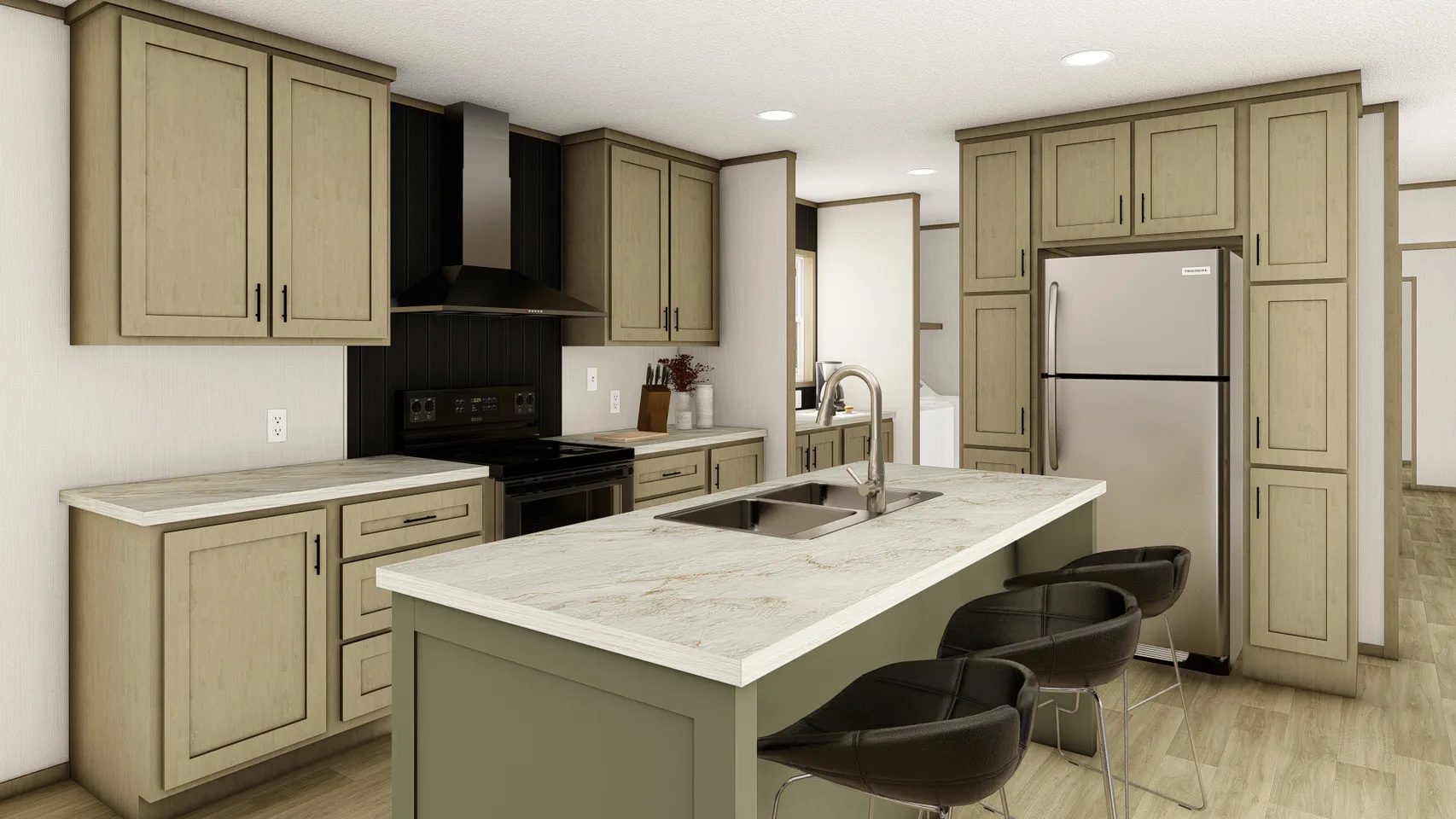 Modern Kitchen: Equipped with 42” DuraCraft® cabinets, a central island, and Frigidaire® stainless steel appliances, the kitchen is both functional and stylish. Design Center